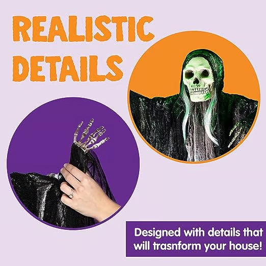• GREAT VALUE SET: Set of 3 scary skeleton hanging grim reapers with different dress and size helps you create creepy and scary atmosphere for any Halloween events